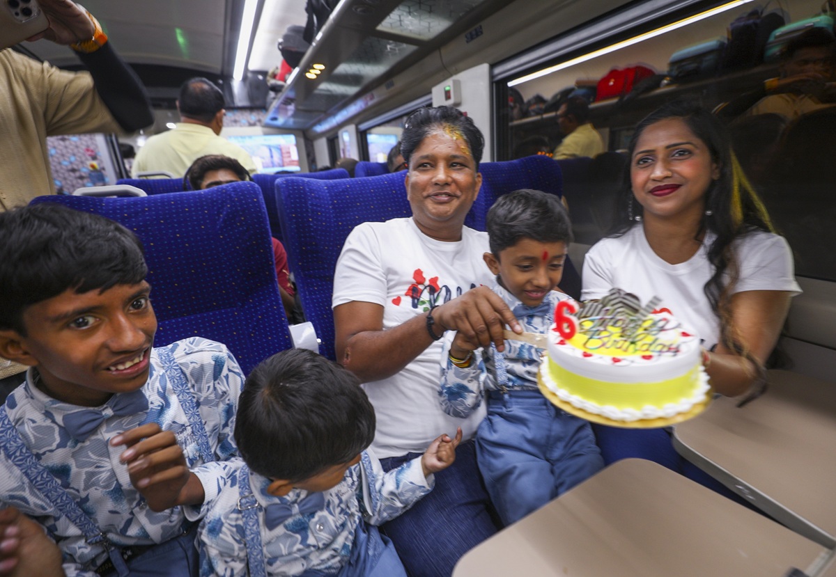 ਵੰਦੇ ਭਾਰਤ ਐਕਸਪ੍ਰੈੱਸ 'ਚ ਕੋਚ ਸੀ7 'ਚ ਚੇਅਰ ਕਾਰ ਦੀਆਂ ਸੀਟਾਂ ਰਿਜ਼ਰਵ ਹੋਣ ਕਾਰਨ ਜੈਸਵਾਲ ਪਰਿਵਾਰ ਨੇ ਕੇਕ ਅਤੇ ਮੋਮਬੱਤੀਆਂ ਲੈ ਕੇ ਟਰੇਨ ਦੇ ਅੰਜੀ ਬਰਿੱਜ ਪਾਰ ਕਰਦੇ ਹੋਏ ਟਰੇਨ 'ਚ ਜਨਮ ਦਿਨ ਮਨਾਉਣ ਦੀ ਤਿਆਰੀ ਸ਼ੁਰੂ ਕਰ ਦਿੱਤੀ। ਟਰੇਨ ਜਦੋਂ ਦੁਨੀਆ ਦੇ ਸਭ ਤੋਂ ਉੱਚੇ ਪੁਲ 'ਤੇ ਪਹੁੰਚੀ ਤਾਂ ਪਰਿਵਾਰ ਨੇ ਕੋਚ 'ਚ ਕੇਕ ਕੱਟਣਾ ਸ਼ੁਰੂ ਕਰ ਦਿੱਤਾ। ਕੋਚ 'ਚ ਸਵਾਰ ਹੋਰ ਯਾਤਰੀਆਂ ਨੇ ਵੀ ਉਨ੍ਹਾਂ ਦੇ ਪੁੱਤ ਨੂੰ ਸ਼ੁੱਭਕਾਮਨਾਵਾਂ ਦਿੱਤੀਆਂ। ਨੇਹਾ ਜੈਸਵਾਲ ਨੇ ਕਿਹਾ,''ਇਹ ਜਨਮ ਦਿਨ ਮੋਕਸ਼ ਲਈ ਬਹੁਤ ਖ਼ਾਸ ਹੈ। ਅਸੀਂ ਕਦੇ ਨਹੀਂ ਸੋਚਿਆ ਸੀ ਕਿ ਅਸੀਂ ਉਸ ਦਾ ਜਨਮ ਦਿਨ ਦੁਨੀਆ ਦੇ ਸਭ ਤੋਂ ਉੱਚੇ ਰੇਲਵੇ ਪੁਲ 'ਤੇ ਇਸ ਤਰ੍ਹਾਂ ਮਨਾਵਾਂਗੇ।'' ਕਟੜਾ-ਸ਼੍ਰੀਨਗਰ ਵਿਚਾਲੇ ਚੱਲਣ ਵਾਲੀ ਪਹਿਲੀ ਟਰੇਨ 'ਚ ਸਫ਼ਰ ਕਰਨ ਲਈ ਯਾਤਰੀਆਂ 'ਚ ਕਾਫ਼ੀ ਉਤਸ਼ਾਹ ਰਿਹਾ। ਦੇਸ਼ ਭਰ ਤੋਂ ਕਟੜਾ ਆਏ ਸ਼੍ਰੀ ਮਾਤਾ ਵੈਸ਼ਣੋ ਦੇਵੀ ਤੀਰਥ ਯਾਤਰੀਆਂ 'ਚੋਂ ਕਈਆਂ ਨੇ ਟਿਕਟ ਬੁਕ ਕਰਵਾ ਕੇ ਸ਼੍ਰੀਨਗਰ ਤੱਕ ਦੀ ਯਾਤਰਾ ਪੂਰੀ ਕਰਨ ਦਾ ਫ਼ੈਸਲਾ ਲਿਆ। 'ਜੈ ਮਾਤਾ ਦੀ' ਅਤੇ 'ਭਾਰਤ ਮਾਤਾ ਦੀ ਜੈ' ਦੇ ਨਾਅਰਿਆਂ ਵਿਚਾਲੇ ਪਹਿਲੀ ਟਰੇਨ ਨੇ ਆਪਣੀ ਇਤਿਹਾਸਕ ਯਾਤਰਾ ਸ਼ੁਰੂ ਕੀਤੀ। ਉੱਤਰ ਪ੍ਰਦੇਸ਼ ਦੇ ਬੁਲੰਦਸ਼ਹਿਰ ਤੋਂ ਆਏ ਇਕ ਪਰਿਵਾਰ ਨੇ ਕਿਹਾ,''ਅਸੀਂ ਪਹਿਲਾਂ ਵੀ ਕਈ ਵਾਰ ਸ਼੍ਰੀਨਗਰ ਆ ਚੁੱਕੇ ਹਾਂ ਪਰ ਸਿਰਫ਼ 3 ਘੰਟਿਆਂ 'ਚ ਸ਼੍ਰੀਨਗਰ ਪਹੁੰਚਣਾ ਇਕ ਸੁਫ਼ਨੇ ਦੇ ਸੱਚ ਹੋਣ ਵਰਗਾ ਸੀ।''