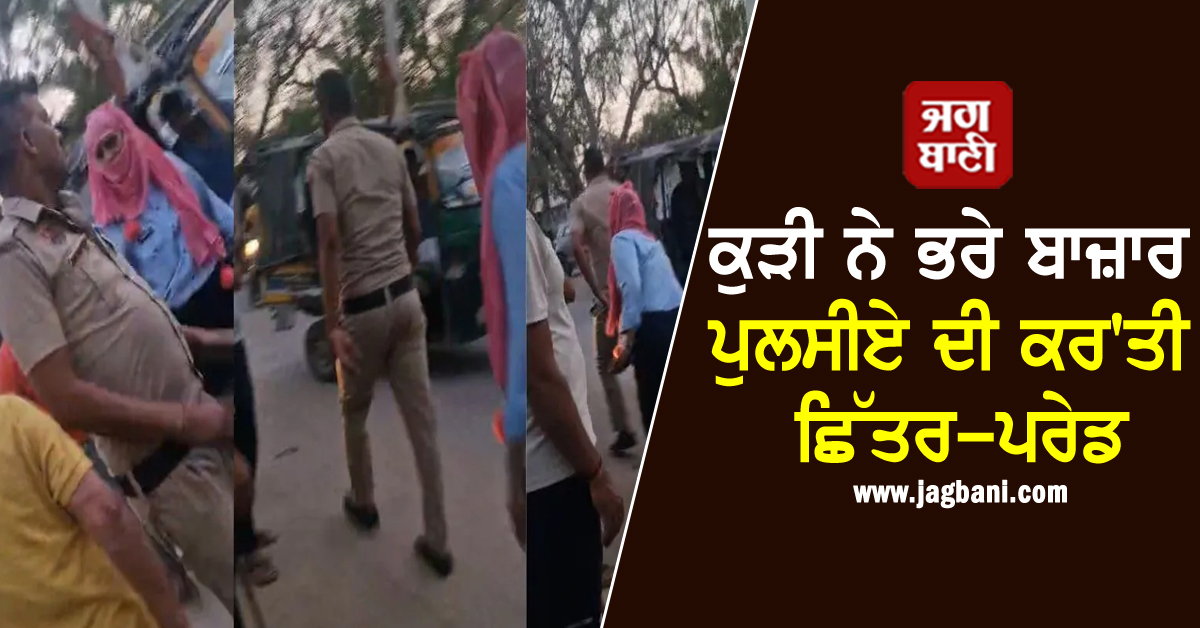 ਕੁੜੀ ਨੇ ਭਰੇ ਬਾਜ਼ਾਰ ਪੁਲਸੀਏ ਦੀ ਕਰ'ਤੀ ਛਿੱਤਰ-ਪਰੇਡ, ਤਮਾਸ਼ਬੀਨ ਬਣ ਦੇਖਦੇ ਰਹੇ ਲੋਕ
