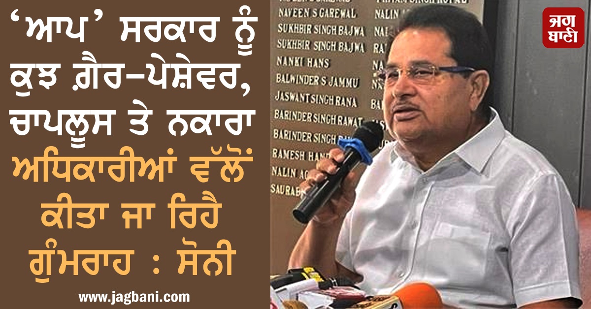 ‘ਆਪ’ ਸਰਕਾਰ ਨੂੰ ਕੁਝ ਗ਼ੈਰ-ਪੇਸ਼ੇਵਰ, ਚਾਪਲੂਸ ਤੇ ਨਕਾਰਾ ਅਧਿਕਾਰੀਆਂ ਵੱਲੋਂ ਕੀਤਾ ਜਾ ਰਿਹੈ ਗੁੰਮਰਾਹ : ਸੋਨੀ
