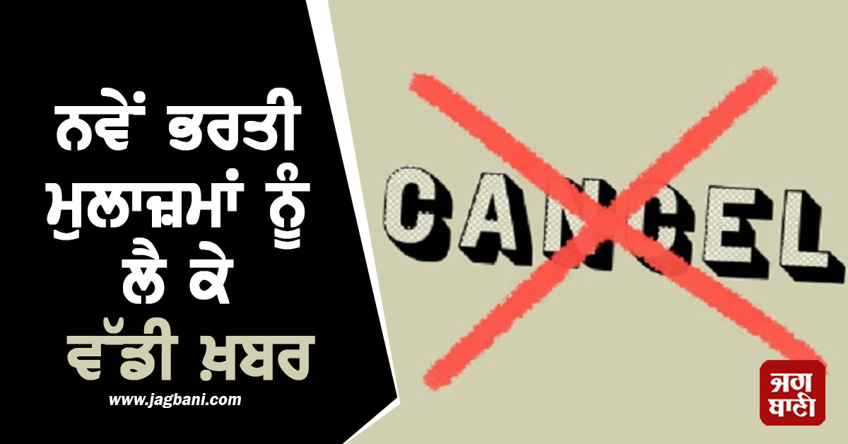 ਨਵੇਂ ਭਰਤੀ ਮੁਲਾਜ਼ਮਾਂ ਨੂੰ ਲੈ ਕੇ ਵੱਡੀ ਖ਼ਬਰ, ਰੱਦ ਹੋ ਗਈ ਇਹ NOTIFICATION