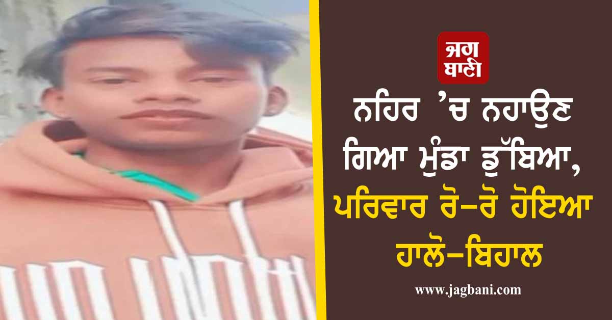 ਨਹਿਰ ’ਚ ਨਹਾਉਣ ਗਿਆ ਮੁੰਡਾ ਡੁੱਬਿਆ, ਪਰਿਵਾਰ ਰੋ-ਰੋ ਹੋਇਆ ਹਾਲੋ-ਬਿਹਾਲ
