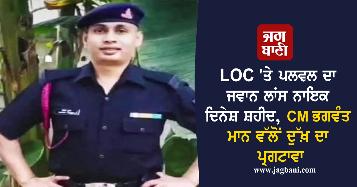 LOC ''ਤੇ ਪਲਵਲ ਦਾ ਜਵਾਨ ਲਾਂਸ ਨਾਇਕ ਦਿਨੇਸ਼ ਸ਼ਹੀਦ, CM ਭਗਵੰਤ ਮਾਨ ਵੱਲੋਂ ਦੁੱਖ਼ ਦਾ ਪ੍ਰਗਟਾਵਾ