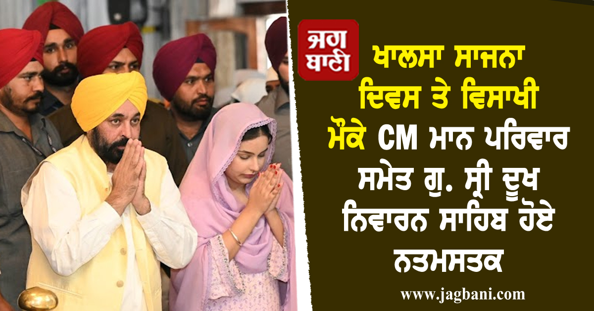 ਖਾਲਸਾ ਸਾਜਨਾ ਦਿਵਸ ਤੇ ਵਿਸਾਖੀ ਮੌਕੇ CM ਮਾਨ ਪਰਿਵਾਰ ਸਮੇਤ ਗੁ. ਸ੍ਰੀ ਦੂਖ ਨਿਵਾਰਨ ਸਾਹਿਬ ਹੋਏ ਨਤਮਸਤਕ