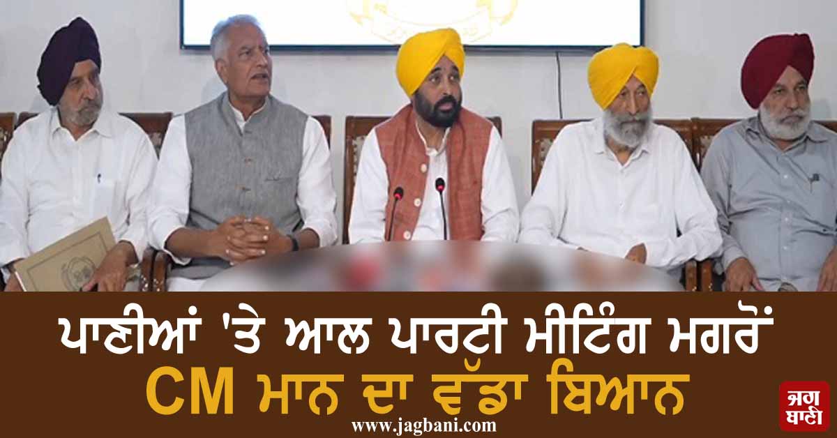 ਪਾਣੀਆਂ ''ਤੇ ਆਲ ਪਾਰਟੀ ਮੀਟਿੰਗ ਮਗਰੋਂ CM ਮਾਨ ਦਾ ਵੱਡਾ ਬਿਆਨ, ਜਾਣੋ ਕੀ ਬੋਲੇ (ਵੀਡੀਓ)