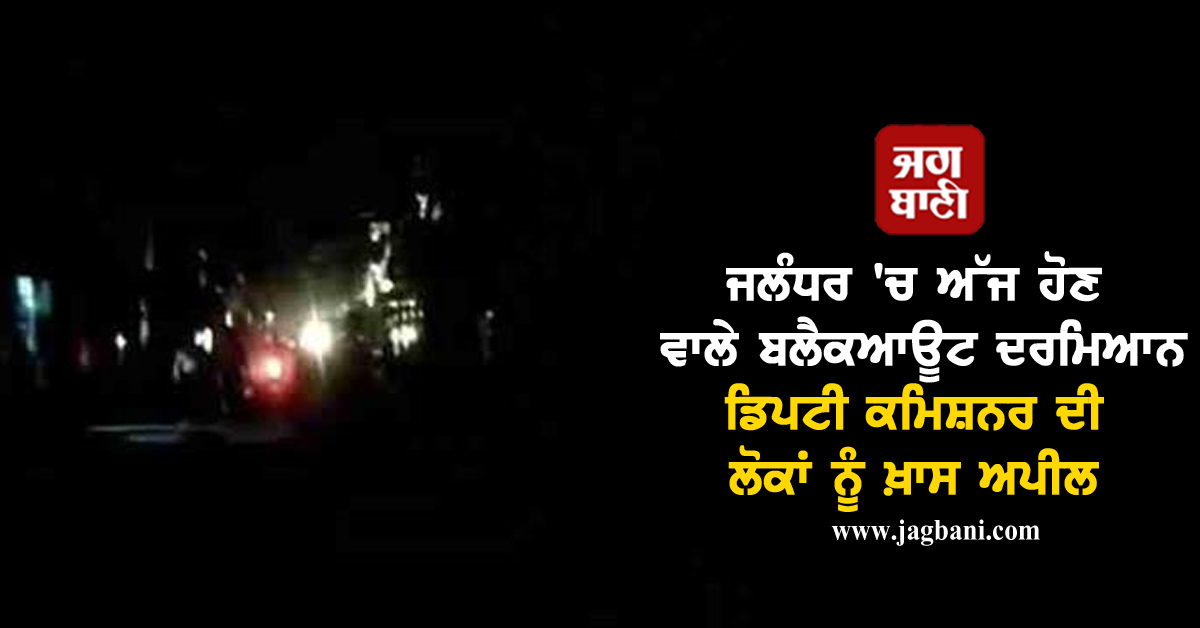 ਜਲੰਧਰ 'ਚ ਅੱਜ ਹੋਣ ਵਾਲੇ ਬਲੈਕਆਊਟ ਦਰਮਿਆਨ ਡਿਪਟੀ ਕਮਿਸ਼ਨਰ ਦੀ ਲੋਕਾਂ ਨੂੰ ਖ਼ਾਸ ਅਪੀਲ