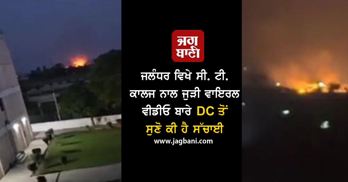 ਵਾਇਰਲ ਹੋਈ ਇਸ ਵੀਡੀਓ ਦਾ ਡਿਪਟੀ ਕਮਿਸ਼ਨਰ ਡਾ. ਹਿਮਾਂਸ਼ੂ ਅਗਰਵਾਲ ਨੇ ਸੱਚ ਦੱਸਿਆ। ਜਲੰਧਰ ਦੇ ਡਿਪਟੀ ਕਮਿਸ਼ਨਰ ਡਾ. ਹਿਮਾਂਸ਼ੂ ਅਗਰਵਾਲ ਨੇ ਇਸ ਸਬੰਧੀ ਪ੍ਰਤੀਕਿਰਿਆ ਦਿੰਦੇ ਹੋਏ ਸਪਸ਼ਟ ਕੀਤਾ ਕਿ ਸੀ. ਟੀ . ਕਾਲਜ ਦੀ ਵੀਡੀਓ ਇਸ ਘਟਨਾ ਨਾਲ ਪੂਰੀ ਤਰ੍ਹਾਂ ਸਬੰਧਿਤ ਨਹੀਂ ਹੈ। ਡੀ. ਸੀ. ਨੇ ਦੱਸਿਆ ਕਿ ਵਾਇਰਲ ਹੋ ਰਹੀ ਵੀਡੀਓ ਸ਼ਾਮ 7.30 ਵਜੇ ਦਾ ਹੈ ਜਦਕਿ ਪਹਿਲਾ ਡਰੋਨ ਰਾਤ ਕਰੀਬ 9 ਵਜੇ ਵੇਖਿਆ ਗਿਆ ਸੀ। ਵੀਡੀਓ ਵਿਚ ਨਜ਼ਰ ਆ ਰਹੀ ਘਟਨਾ ਦਰਅਸਲ ਇਕ ਖੇਤ ਵਿਚ ਲੱਗੀ ਅੱਗ ਦੀ ਹੈ, ਨਾ ਕਿ ਕਿਸੇ ਡਰੋਨ ਹਮਲੇ ਦੀ ਫ਼ੌਜੀ ਕਾਰਵਾਈ ਦੀ।