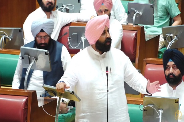 ਚੰਡੀਗੜ੍ਹ : ਪੰਜਾਬ ਵਿਧਾਨ ਸਭਾ 'ਚ ਪਾਣੀਆਂ ਦੇ ਮੁੱਦੇ 'ਤੇ ਬੋਲਦਿਆਂ ਕੈਬਨਿਟ ਮੰਤਰੀ ਹਰਜੋਤ ਸਿੰਘ ਬੈਂਸ ਨੇ ਕਿਹਾ ਕਿ ਪੰਜਾਬ ਇਕ ਜਜ਼ਬਾਤੀ ਸੂਬਾ ਹੈ ਅਤੇ ਪਾਣੀ ਸਾਡੀ ਰੂਹ ਹੈ ਅਤੇ ਪਾਣੀ ਹੀ ਸਾਡਾ ਸਾਹ ਹੈ। ਸਿਵਾਏ ਖੇਤੀਬਾੜੀ ਦੇ ਸਾਡੇ ਕੋਲ ਕੁੱਝ ਨਹੀਂ ਹੈ, ਜੋ ਕਿ ਪੂਰੀ ਤਰ੍ਹਾਂ ਪਾਣੀ 'ਤੇ ਨਿਰਭਰ ਹੈ ਅਤੇ ਪਾਣੀ ਹੀ ਸਾਡੀ ਲਾਈਫ਼ ਲਾਈਨ ਹੈ। ਹਰਜੋਤ ਬੈਂਸ ਨੇ ਕਿਹਾ ਕਿ ਪਾਣੀ ਤੋਂ ਬਿਨਾਂ ਪੰਜਾਬ ਖ਼ਤਮ ਹੋ ਜਾਵੇਗਾ।