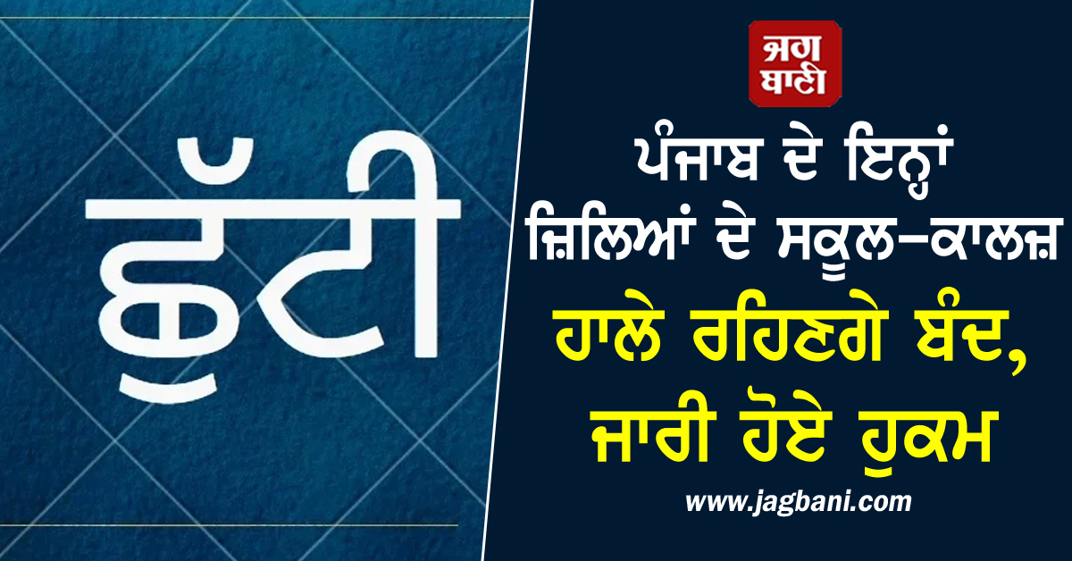 ਪੰਜਾਬ ਦੇ ਇਨ੍ਹਾਂ ਜ਼ਿਲਿਆਂ ਦੇ ਸਕੂਲ-ਕਾਲਜ਼ ਹਾਲੇ ਰਹਿਣਗੇ ਬੰਦ, ਜਾਰੀ ਹੋਏ ਹੁਕਮ