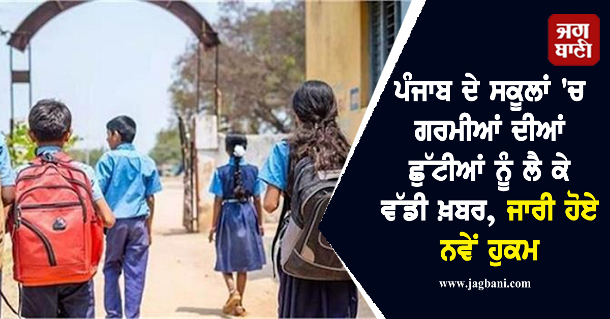 ਪੰਜਾਬ ਦੇ ਸਕੂਲਾਂ ''ਚ ਗਰਮੀਆਂ ਦੀਆਂ ਛੁੱਟੀਆਂ ਨੂੰ ਲੈ ਕੇ ਵੱਡੀ ਖ਼ਬਰ, ਜਾਰੀ ਹੋਏ ਨਵੇਂ ਹੁਕਮ
