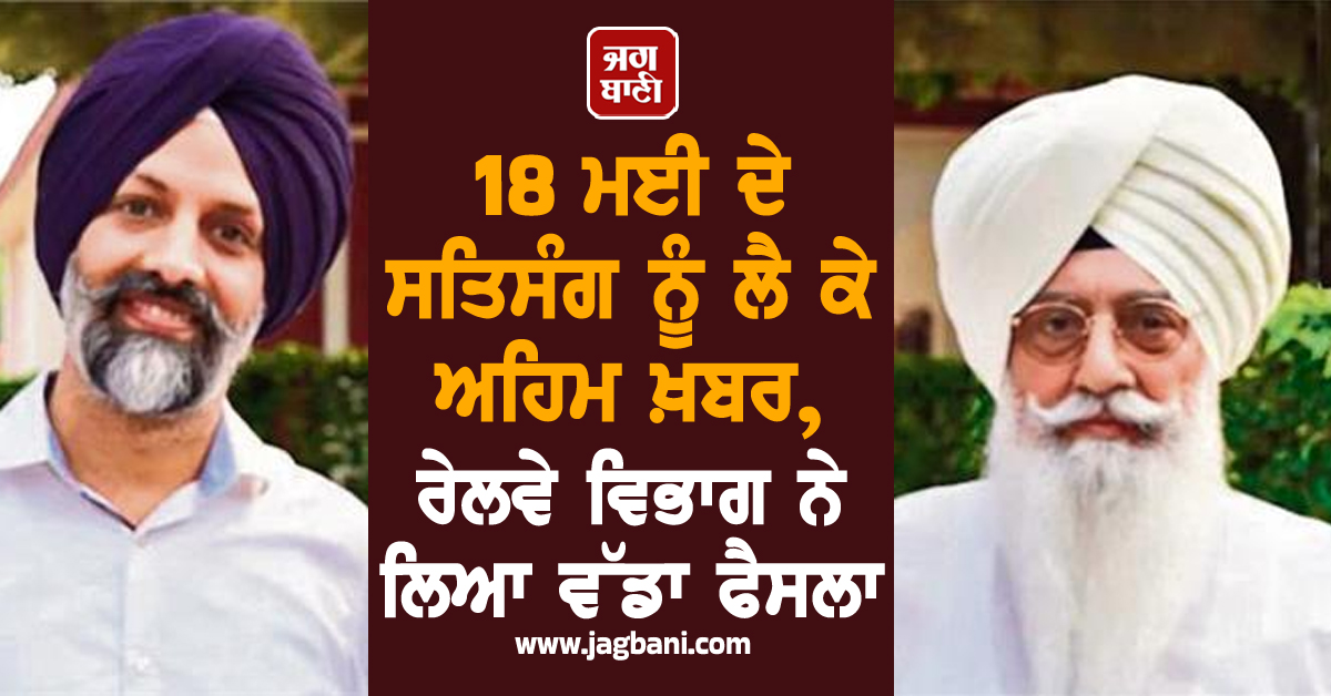 18 ਮਈ ਦੇ ਸਤਿਸੰਗ ਨੂੰ ਲੈ ਕੇ ਅਹਿਮ ਖ਼ਬਰ, ਰੇਲਵੇ ਵਿਭਾਗ ਨੇ ਲਿਆ ਵੱਡਾ ਫੈਸਲਾ