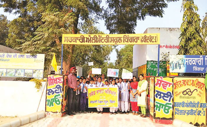 ਸਰਕਾਰੀ ਮਿਡਲ ਸਕੂਲ ਕਿੰਗਰਾ : ਇਸ ਸਕੂਲ ਦੀ ਇਮਾਰਤ ਨੂੰ ਇਥੋਂ ਦੇ ਅਧਿਆਪਕ ਧਰਮਿੰਦਰ ਸਿੰਘ ਨੇ ਆਪਣੇ ਦਸਵੰਧ ਨਾਲ ਸ਼ਿੰਗਾਰਿਆ ਹੈ। ਧਰਮਿੰਦਰ ਸਿੰਘ ਦੀ ਕੋਸ਼ਿਸ਼ ਸੀ ਕਿ ਵਿਦਿਆਰਥੀਆਂ ਨੂੰ ਅਜਿਹਾ ਮਾਹੌਲ ਦਿੱਤਾ ਜਾਵੇ, ਜਿਸ 'ਚ ਉਨ੍ਹਾਂ ਨੂੰ ਵਿੱਦਿਆ ਹਾਸਲ ਕਰਦਿਆਂ ਖੁਸ਼ੀ ਮਿਲੇ। ਇਸੇ ਕੋਸ਼ਿਸ਼ ਲਈ ਧਰਮਿੰਦਰ ਸਿੰਘ ਨੂੰ 2015 'ਚ ਸਟੇਟ ਅਵਾਰਡ ਅਤੇ 2017 'ਚ ਜ਼ਿਲਾ, ਫਿਰ ਸੂਬਾ ਪੱਧਰ ਅਤੇ ਫਿਰ ਨੈਸ਼ਨਲ ਪੱਧਰ 'ਤੇ ਸਵੱਛ ਭਾਰਤ ਸਨਮਾਨ ਮਿਲਿਆ ਸੀ। ਧਰਮਿੰਦਰ ਸਿੰਘ ਨੇ ਇਥੇ ਆਪਣੇ ਨਿੱਜੀ ਵਿੱਤੀ ਸਾਧਨਾਂ 'ਚੋਂ ਹੁਣ ਤੱਕ 5 ਲੱਖ ਦੇ ਲਗਭਗ ਖਰਚ ਕਰ ਲਿਆ ਹੈ। ਸਾਫ-ਸਫਾਈ ਤੋਂ ਲੈ ਕੇ ਰੁੱਖ-ਬੂਟਿਆਂ ਤੱਕ ਸਕੂਲ ਦੇ ਹਰ ਖੇਤਰ ਨੂੰ ਬੱਚਿਆਂ ਲਈ ਰਹਿਣਯੋਗ ਬਣਾਇਆ ਹੈ। ਇਸ ਸਕੂਲ 'ਚ 50 ਦੇ ਲਗਭਗ ਵੱਡੇ ਰੁੱਖ ਅਤੇ 300 ਦੇ ਲਗਭਗ ਛੋਟੇ ਬੂਟੇ ਹਨ। ਧਰਮਿੰਦਰ ਸਿੰਘ ਕਹਿੰਦੇ ਹਨ ਕਿ ਬੱਚਿਆਂ ਨੂੰ ਸਿੱਖਿਆ ਦੇਣ ਵੇਲੇ ਸਾਨੂੰ ਅਧਿਆਪਕਾਂ ਨੂੰ ਬਹੁਤ ਪਹਿਲੂਆਂ ਤੋਂ ਸੋਚਣਾ ਪੈਂਦਾ ਹੈ। ਵਿਦਿਆਰਥੀ ਦੀ ਬੁਨਿਆਦ 'ਚ ਉਹਦੀ ਪੜ੍ਹਾਈ ਕਿੰਝ ਹੋ ਰਹੀ ਹੈ ਅਤੇ ਉਹ ਕੀ ਸਿੱਖ ਰਿਹਾ ਹੈ, ਇਹ ਬਹੁਤ ਖਾਸ ਹੈ।