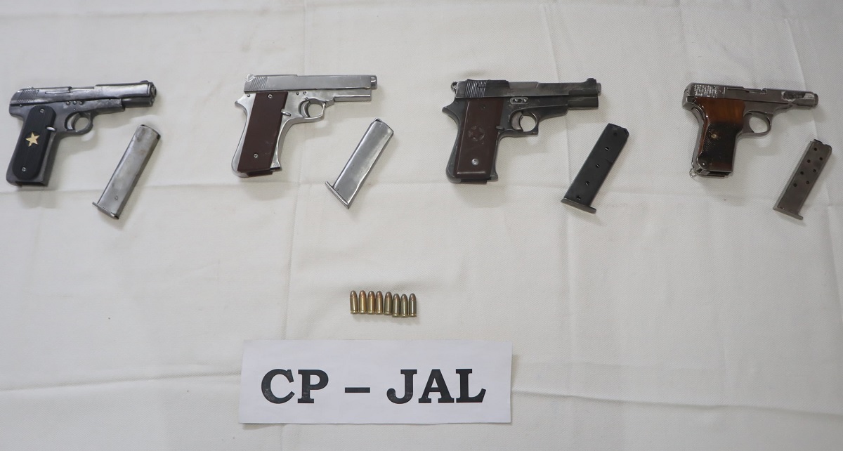 ਜਲੰਧਰ (ਕੁੰਦਨ/ਪੰਕਜ): 'ਯੁੱਧ ਨਸ਼ਿਆਂ ਵਿਰੁੱਧ' ਚੱਲ ਰਹੀ ਪਹਿਲਕਦਮੀ ਵਿੱਚ ਇੱਕ ਮਹੱਤਵਪੂਰਨ ਪ੍ਰਾਪਤੀ ਵਿੱਚ ਕਮਿਸ਼ਨਰੇਟ ਜਲੰਧਰ ਦੇ ਸੀਆਈਏ ਸਟਾਫ ਨੇ ਤਿੰਨ ਵਿਅਕਤੀਆਂ ਨੂੰ ਗ੍ਰਿਫ਼ਤਾਰ ਕੀਤਾ ਅਤੇ ਚਾਰ ਗੈਰ-ਕਾਨੂੰਨੀ ਪਿਸਤੌਲ (.32 ਬੋਰ), ਅੱਠ ਜ਼ਿੰਦਾ ਕਾਰਤੂਸ ਅਤੇ 150 ਗ੍ਰਾਮ ਹੈਰੋਇਨ ਜ਼ਬਤ ਕੀਤੀ।