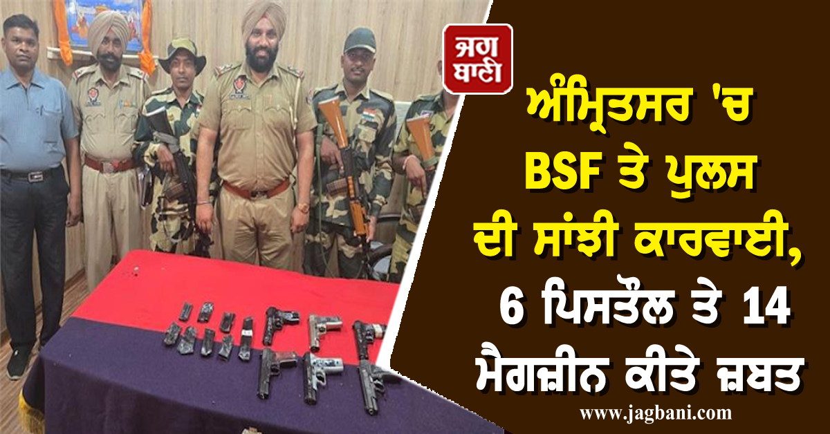 ਅੰਮ੍ਰਿਤਸਰ 'ਚ BSF ਤੇ ਪੁਲਸ ਦੀ ਸਾਂਝੀ ਕਾਰਵਾਈ, 6 ਪਿਸਤੌਲ ਤੇ 14 ਮੈਗਜ਼ੀਨ ਕੀਤੇ ਜ਼ਬਤ