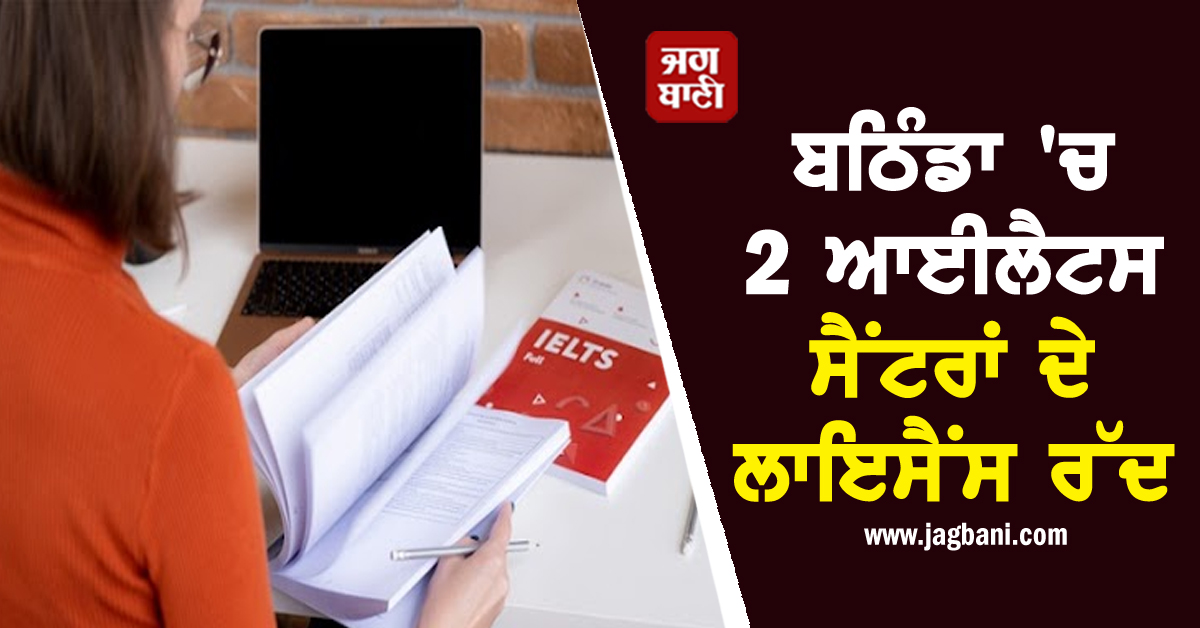 ਬਠਿੰਡਾ 'ਚ 2 ਆਈਲੈਟਸ ਸੈਂਟਰਾਂ ਦੇ ਲਾਇਸੈਂਸ ਰੱਦ, ਜ਼ਿਲ੍ਹਾ ਮੈਜਿਸਟ੍ਰੇਟ ਨੇ ਜਾਰੀ ਕੀਤੇ ਹੁਕਮ