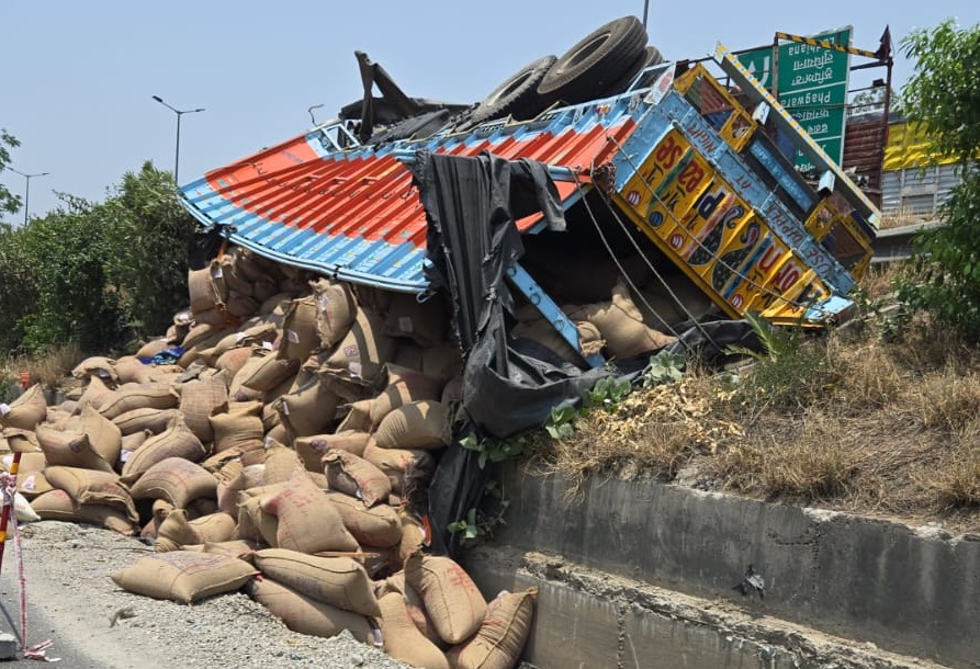 ਲੁਧਿਆਣੇ ਤੋਂ ਜਲੰਧਰ ਆ ਰਿਹਾ ਚੌਲ਼ਾਂ ਨਾਲ ਭਰਿਆ ਟਰੱਕ ਪਲਟਿਆ