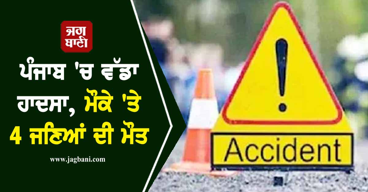 ਪੰਜਾਬ ''ਚ ਵੱਡਾ ਹਾਦਸਾ, ਮੌਕੇ ''ਤੇ 4 ਜਣਿਆਂ ਦੀ ਮੌਤ