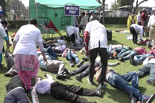 ਲੁਧਿਆਣਾ (ਨਰਿੰਦਰ) : ਸ਼ਹਿਰ ਦੇ ਵੇਰਕਾ ਮਿਲਕ ਪਲਾਂਟ 'ਚ ਵੀਰਵਾਰ ਨੂੰ ਅਮੋਨੀਆ ਗੈਸ ਲੀਕ ਹੋਣ ਕਾਰਨ ਤਰਥੱਲੀ ਮਚ ਲਈ, ਜਿਸ ਤੋਂ ਬਾਅਦ ਬਚਾਅ ਕਾਰਜ ਚਲਾਇਆ ਗਿਆ। ਅਸਲ 'ਚ ਵੇਰਕਾ ਮਿਲਕ ਪਲਾਂਟ 'ਚ ਮੌਕ ਡਰਿੱਲ ਦਾ ਆਯੋਜਨ ਕਰਾਇਆ ਗਿਆ ਸੀ। ਇਸ ਦੌਰਾਨ ਆਰਜ਼ੀ ਤੌਰ 'ਤੇ ਅਮੋਨੀਆ ਗੈਸ ਲੀਕ ਹੋਣ ਦਾ ਨਾਟਕ ਦਿਖਾਇਆ ਗਿਆ। ਇਸ ਮੌਕੇ ਪੰਜਾਬ ਪੁਲਸ ਐੱਨ. ਡੀ. ਆਰ. ਐੱਫ. ਅਤੇ ਜ਼ਿਲਾ ਪ੍ਰਸ਼ਾਸਨ ਦੀਆਂ ਟੀਮਾਂ ਨੇ ਹਿੱਸਾ ਲਿਆ ਅਤੇ ਖਾਸ ਤੌਰ 'ਤੇ ਅੱਗ ਬੁਝਾਊ ਅਮਲਾ ਐਂਬੂਲੈਂਸ ਅਤੇ ਡਾਕਟਰਾਂ ਦੀ ਟੀਮ ਸ਼ਾਮਲ ਹੋਈ। ਇਸ ਪੂਰੇ ਆਪਰੇਸ਼ਨ ਦੀ ਇੰਚਾਰਜ ਅਤੇ ਐੱਨ. ਡੀ. ਆਰ. ਐੱਫ. ਦੇ ਅਧਿਕਾਰੀਆਂ ਨੇ ਦੱਸਿਆ ਕਿ ਲਗਭਗ 135 ਲੋਕਾਂ ਦੀ ਮੌਕ ਡਰਿੱਲ ਦੌਰਾਨ ਜਾਨ ਬਚਾਈ ਗਈ ਹੈ।