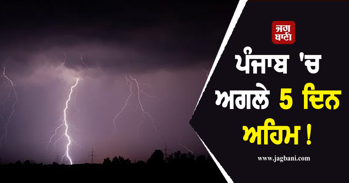 ਪੰਜਾਬ ''ਚ ਅਗਲੇ 5 ਦਿਨ ਅਹਿਮ! 12 ਜ਼ਿਲ੍ਹਿਆਂ ਲਈ Alert, ਇਨ੍ਹਾਂ ਤਾਰੀਖ਼ਾਂ ਨੂੰ ਤੂਫ਼ਾਨ ਦੇ ਨਾਲ ਪਵੇਗਾ ਭਾਰੀ ਮੀਂਹ