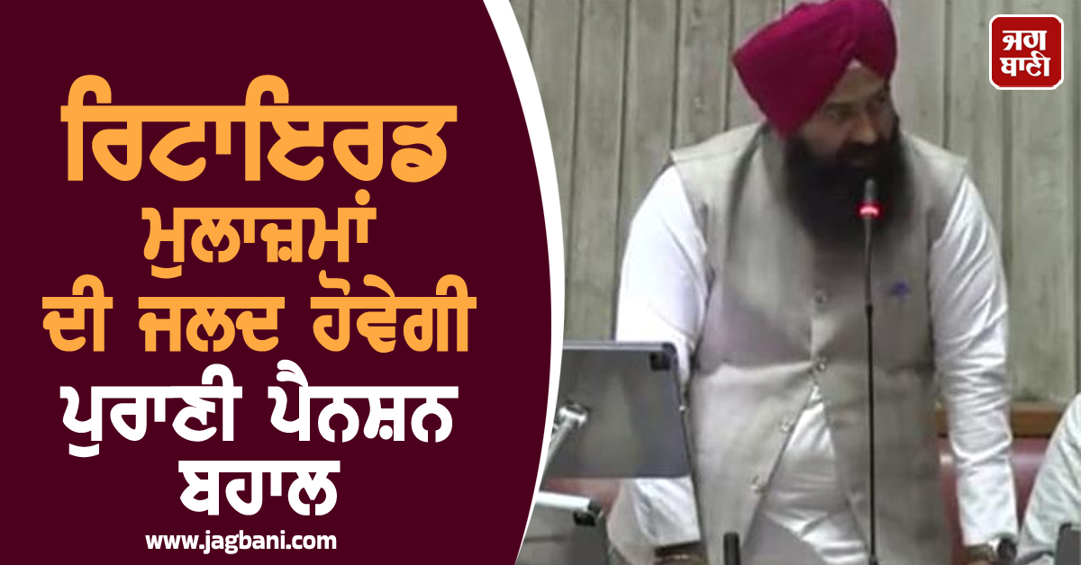 ਰਿਟਾਇਰਡ ਮੁਲਾਜ਼ਮਾਂ ਦੀ ਜਲਦ ਹੋਵੇਗੀ ਪੁਰਾਣੀ ਪੈਨਸ਼ਨ ਬਹਾਲ, ਪੰਜਾਬ ਵਿਧਾਨ ਸਭਾ ''ਚ ਗੂੰਜਿਆ ਮੁੱਦਾ