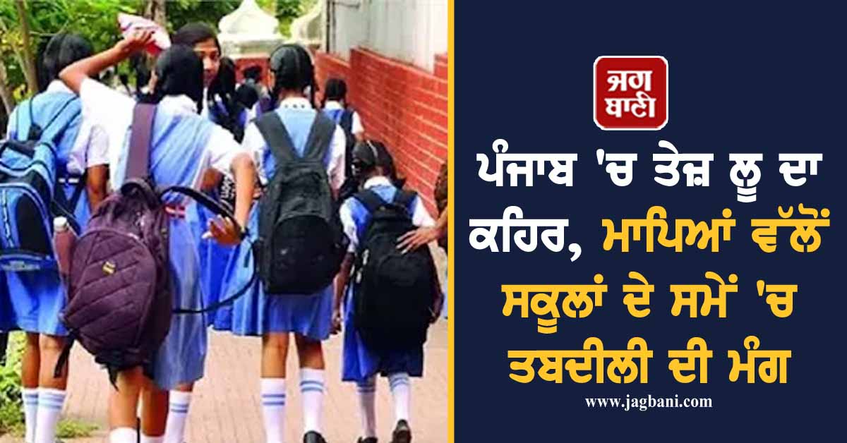 ਪੰਜਾਬ ''ਚ ਤੇਜ਼ ਲੂ ਦਾ ਕਹਿਰ, ਮਾਪਿਆਂ ਵੱਲੋਂ ਸਕੂਲਾਂ ਦੇ ਸਮੇਂ ''ਚ ਤਬਦੀਲੀ ਦੀ ਮੰਗ