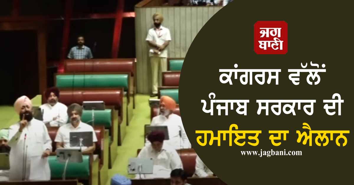 ਕਾਂਗਰਸ ਵੱਲੋਂ ਪੰਜਾਬ ਸਰਕਾਰ ਦੀ ਹਮਾਇਤ ਦਾ ਐਲਾਨ