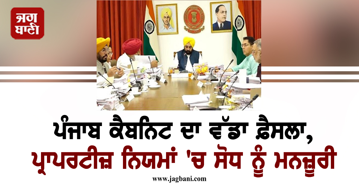 ਪੰਜਾਬ ਕੈਬਨਿਟ ਦਾ ਵੱਡਾ ਫ਼ੈਸਲਾ, ਪ੍ਰਾਪਰਟੀਜ਼ ਨਿਯਮਾਂ 'ਚ ਸੋਧ ਨੂੰ ਮਨਜ਼ੂਰੀ
