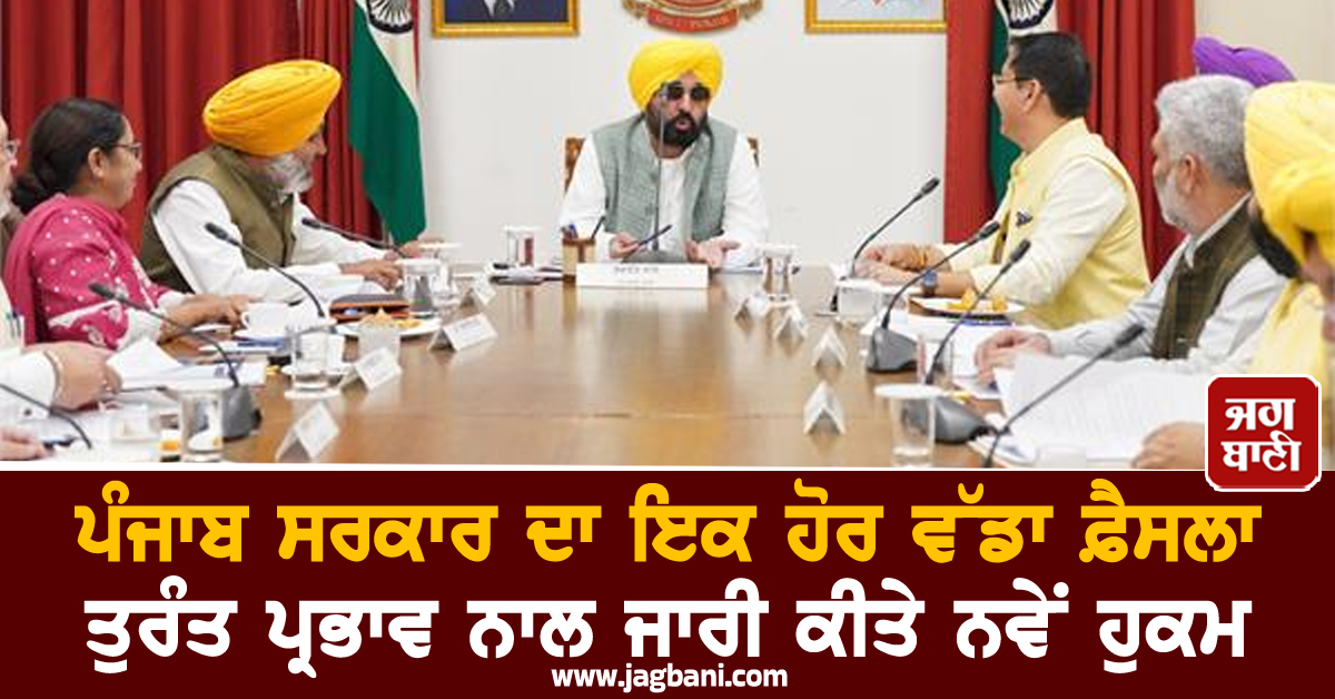 ਪੰਜਾਬ ਸਰਕਾਰ ਦਾ ਇਕ ਹੋਰ ਵੱਡਾ ਫ਼ੈਸਲਾ, ਤੁਰੰਤ ਪ੍ਰਭਾਵ ਨਾਲ ਜਾਰੀ ਕੀਤੇ ਨਵੇਂ ਹੁਕਮ