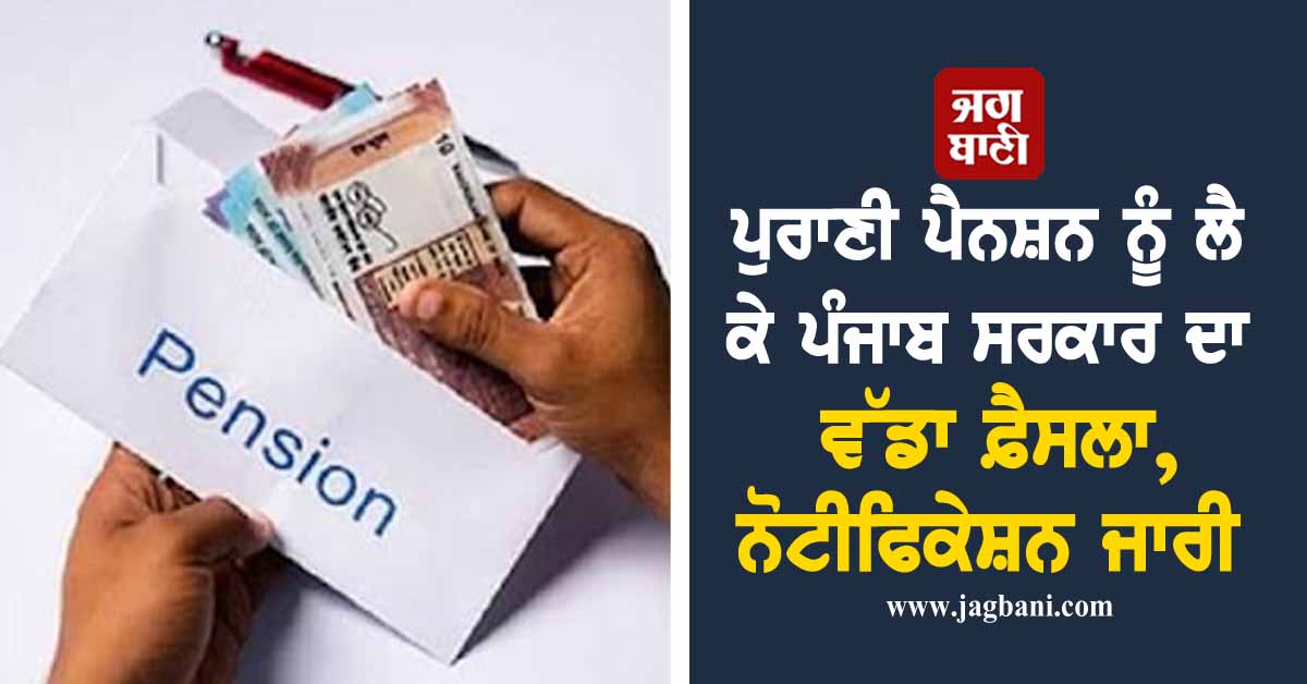 ਪੁਰਾਣੀ ਪੈਨਸ਼ਨ ਨੂੰ ਲੈ ਕੇ ਪੰਜਾਬ ਸਰਕਾਰ ਦਾ ਵੱਡਾ ਫ਼ੈਸਲਾ, ਨੋਟੀਫਿਕੇਸ਼ਨ ਜਾਰੀ