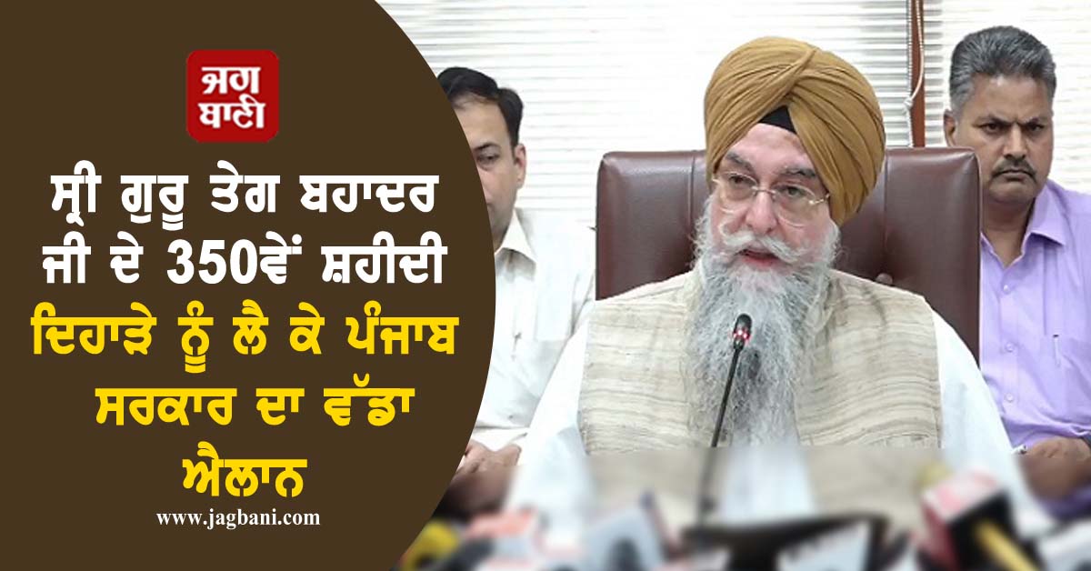ਸ੍ਰੀ ਗੁਰੂ ਤੇਗ ਬਹਾਦਰ ਜੀ ਦੇ 350ਵੇਂ ਸ਼ਹੀਦੀ ਦਿਹਾੜੇ ਨੂੰ ਲੈ ਕੇ ਪੰਜਾਬ ਸਰਕਾਰ ਦਾ ਵੱਡਾ ਐਲਾਨ (ਵੀਡੀਓ)