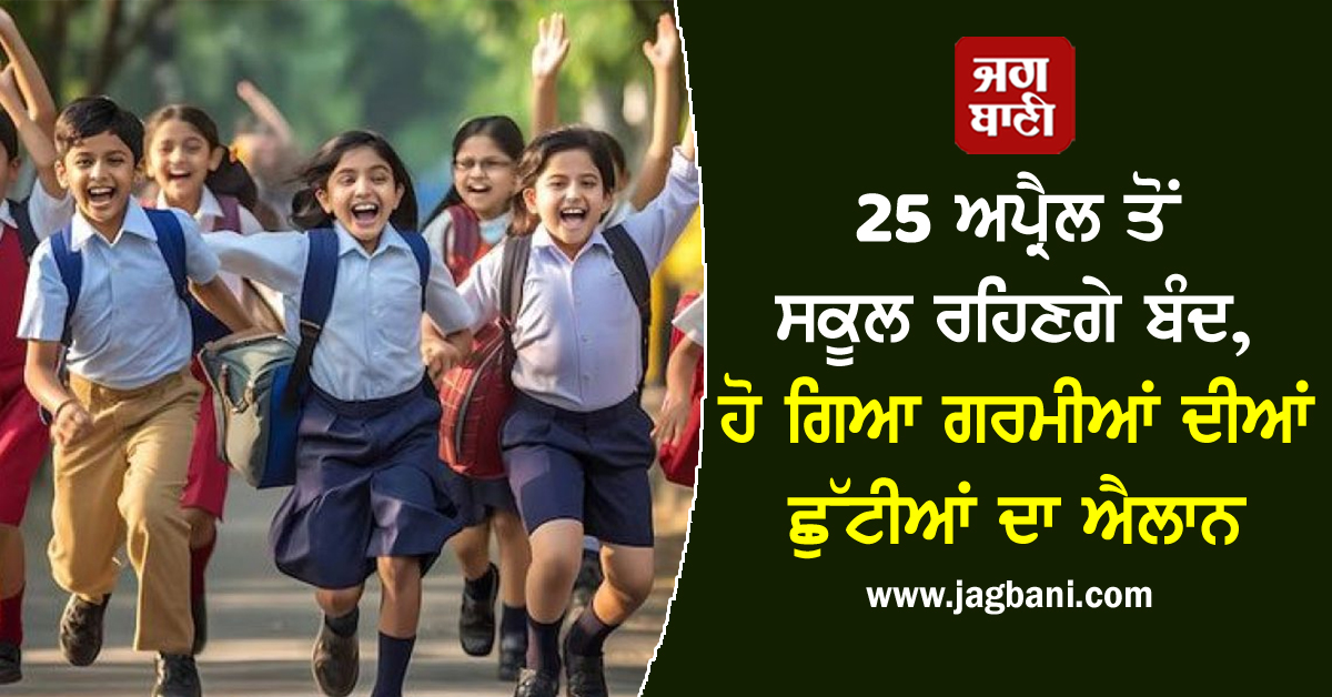 25 ਅਪ੍ਰੈਲ ਤੋਂ ਸਕੂਲ ਰਹਿਣਗੇ ਬੰਦ, ਹੋ ਗਿਆ ਗਰਮੀਆਂ ਦੀਆਂ ਛੁੱਟੀਆਂ ਦਾ ਐਲਾਨ