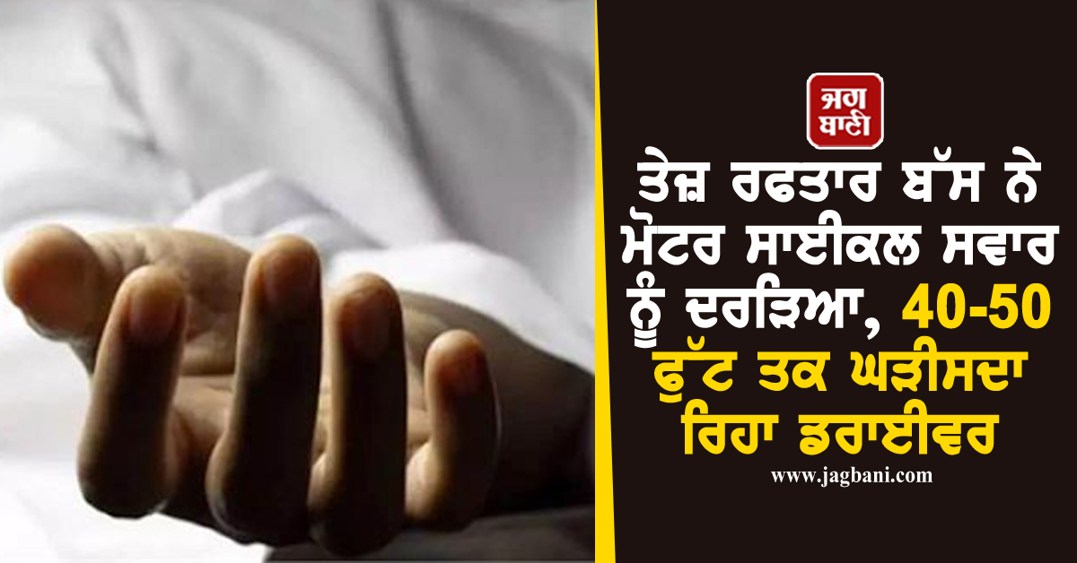 ਤੇਜ਼ ਰਫਤਾਰ ਬੱਸ ਨੇ ਮੋਟਰ ਸਾਈਕਲ ਸਵਾਰ ਨੂੰ ਦਰੜਿਆ, 40-50 ਫੁੱਟ ਤਕ ਘੜੀਸਦਾ ਰਿਹਾ ਡਰਾਈਵਰ