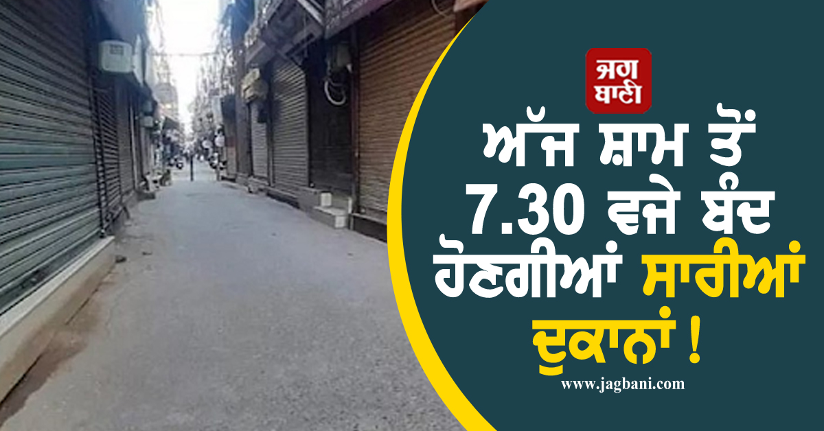 ਅੱਜ ਸ਼ਾਮ ਤੋਂ 7.30 ਵਜੇ ਬੰਦ ਹੋਣਗੀਆਂ ਸਾਰੀਆਂ ਦੁਕਾਨਾਂ! ਪੰਜਾਬ ਦੇ ਇਸ ਜ਼ਿਲ੍ਹੇ 'ਚ ਪੂਰੇ ਮਹੀਨੇ ਲਈ ਹੁਕਮ ਜਾਰੀ