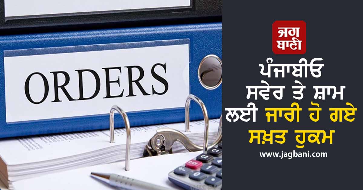 ਪੰਜਾਬੀਓ ਸਵੇਰ ਤੇ ਸ਼ਾਮ ਲਈ ਜਾਰੀ ਹੋ ਗਏ ਸਖ਼ਤ ਹੁਕਮ, ਨਾ ਮੰਨਣ ਵਾਲਿਆਂ 'ਤੇ...