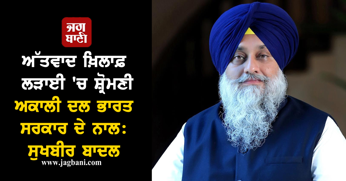 ਅੱਤਵਾਦ ਖ਼ਿਲਾਫ਼ ਲੜਾਈ 'ਚ ਸ਼੍ਰੋਮਣੀ ਅਕਾਲੀ ਦਲ ਭਾਰਤ ਸਰਕਾਰ ਦੇ ਨਾਲ: ਸੁਖਬੀਰ ਬਾਦਲ