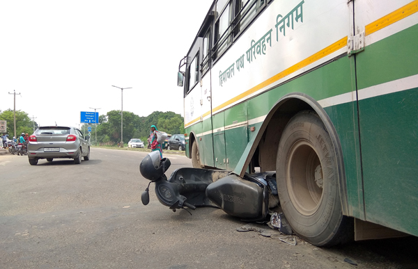 ਹਿਮਾਚਲ ਰੋਡਵੇਜ਼ ਬੱਸ ਦੀ ਲਪੇਟ ’ਚ ਆਇਆ ਐਕਟਿਵਾ ਸਵਾਰ