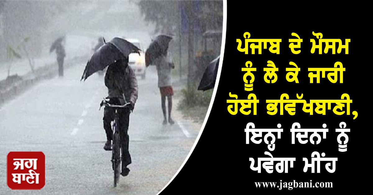 ਪੰਜਾਬ ਦੇ ਮੌਸਮ ਨੂੰ ਲੈ ਕੇ ਜਾਰੀ ਹੋਈ ਭਵਿੱਖਬਾਣੀ, ਇਨ੍ਹਾਂ ਦਿਨਾਂ ਨੂੰ ਪਵੇਗਾ ਮੀਂਹ