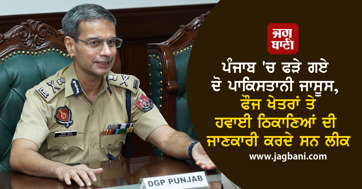 ਪੰਜਾਬ ''ਚ ਫੜੇ ਗਏ ਦੋ ਪਾਕਿਸਤਾਨੀ ਜਾਸੂਸ, ਫੌਜ ਖੇਤਰਾਂ ਤੇ ਹਵਾਈ ਠਿਕਾਣਿਆਂ ਦੀ ਜਾਣਕਾਰੀ ਕਰਦੇ ਸਨ ਲੀਕ