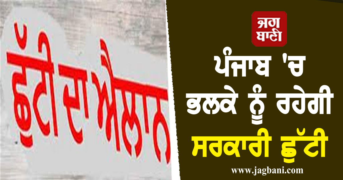 ਪੰਜਾਬ ''ਚ ਭਲਕੇ ਨੂੰ ਰਹੇਗੀ ਸਰਕਾਰੀ ਛੁੱਟੀ, ਬੰਦ ਰਹਿਣਗੇ ਸਕੂਲ ਤੇ ਕਾਲਜ