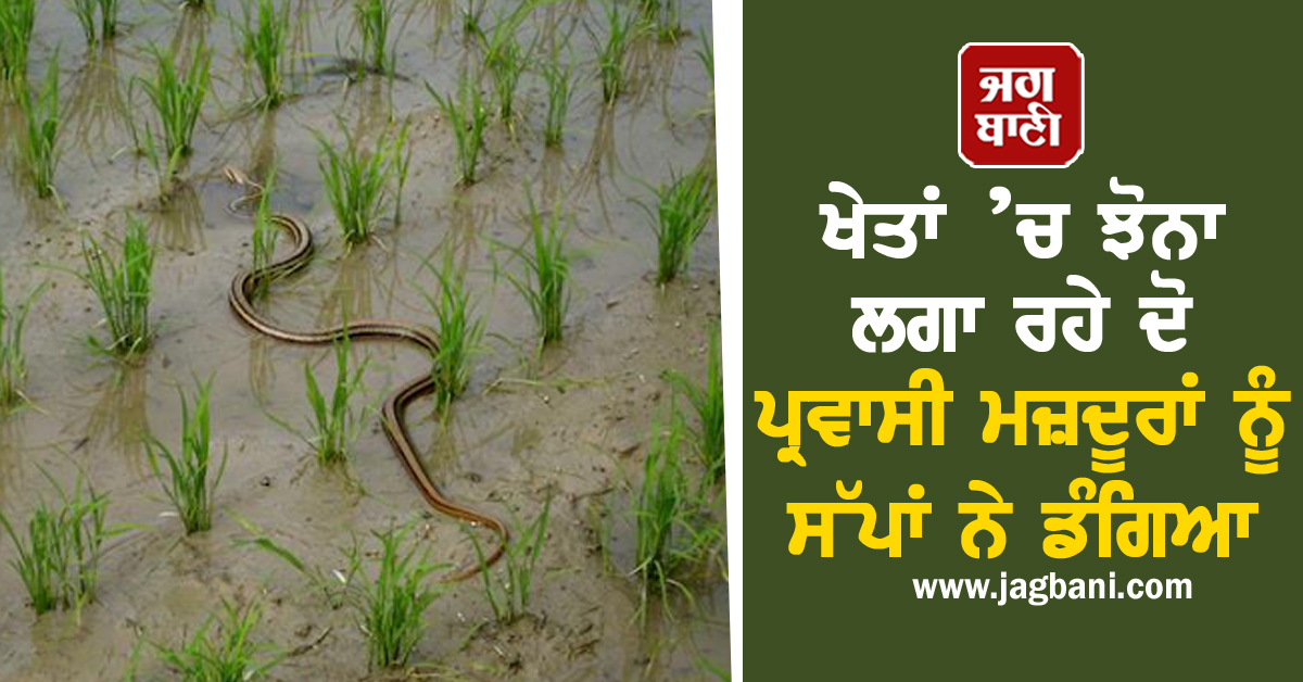 ਖੇਤਾਂ ’ਚ ਝੋਨਾ ਲਗਾ ਰਹੇ ਦੋ ਪ੍ਰਵਾਸੀ ਮਜ਼ਦੂਰਾਂ ਨੂੰ ਸੱਪਾਂ ਨੇ ਡੰਗਿਆ