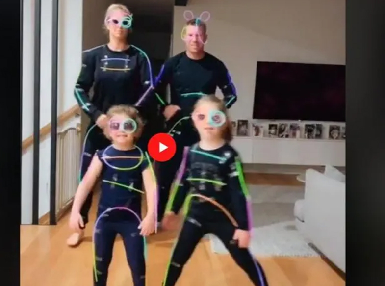 ਵਾਰਨਰ ਨੇ ਮੰਗਲਵਾਰ ਨੂੰ ਇੰਸਟਾਗ੍ਰਾਮ ’ਤੇ ਆਪਣੀ ਇਕ ਨਵੀਂ ਟਿਕਟਾਕ ਵੀਡੀਓ ਪੋਸਟ ਕੀਤੀ। ਇਸ ’ਚ ਉਹ ਉਨ੍ਹਾਂ ਦੀ ਪਤਨੀ ਕੈਂਡਿਸ ਅਤੇ ਉਨ੍ਹਾਂ ਦੀ ਦੋ ਬੇਟੀਆਂ ਪੰਜਾਬੀ ਸਿੰਗਰ ਗੁਰੂ ਰੰਧਾਵਾ ਦੇ ਲੋਕਪਿ੍ਰਯ ਪੰਜਾਬੀ ਗਾਣੇ 'ਸਲੋਲੀ ਸਲੋਲੀ' ’ਤੇ ਨੱਚਦੇ ਹੋਏ ਦਿੱਖ ਰਹੇ ਹਨ। ਡੇਵਿਡ ਵਾਰਨਰ ਆਪਣੀ ਇਸ ਨਵੀਂ ਵੀਡੀਓਜ਼ ’ਚ ਐੱਲ. ਈ. ਡੀ. ਲਾਈਟਾਂ ਲੱਗੇ ਹੋਏ ਕੱਪੜੇ ਪਹਿਨੇ ਨਜ਼ਰ ਆਏ। ਉਥੇ ਹੀ ਉਨ੍ਹਾਂ ਦਾ ਪੂਰਾ ਪਰਿਵਾਰ ਵੀ ਉਨ੍ਹਾਂ ਦੀ ਤਰ੍ਹਾਂ ਹੀ ਕੱਪੜੇ ਪਹਿਨੇ ਹੋਏ ਦਿੱਖ ਰਿਹਾ ਸੀ। ਡੇਵੀਡ ਅਤੇ ਉਨ੍ਹਾਂ ਦਾ ਪੂਰਾ ਪਰਿਵਾਰ ਪੰਜਾਬੀ ਸਿੰਗਰ ਗੁਰੂ ਰੰਧਾਵਾ ਦੇ ਗਾਣੇ ’ਤੇ ਡਾਂਸ ਕਰ ਰਿਹਾ ਹੁੰਦਾ ਹੈ, ਉਦੋਂ ਲਾਈਟ ਬੰਦ ਹੋ ਜਾਂਦੀਆਂ ਹਨ ਅਤੇ ਨਾਲ ਹੀ ਕੱਪੜਿਆਂ ’ਤੇ ਲੱਗੀਆਂ ਲਾਈਟਾਂ ਜੱਗ ਜਾਂਦੀਆਂ ਹਨ। ਵਾਰਨਰ ਨੇ ਆਪਣੀ ਇਸ ਵੀਡੀਓ ਦੀ ਕੈਪਸ਼ਨ ’ਚ ਲਿੱਖਿਆ, ''ਹਾਂ ਅਸੀਂ ਆਪਣਾ ਦਿਮਾਗ ਖੋਹ ਚੁੱਕੇ ਹਾਂ, ਹਨ੍ਹੇਰੀ ਰਾਤ ’ਚ ਥੋੜ੍ਹੇ ਗਲੋਅ (ਰੋਸ਼ਨੀ) ਦੀ ਜ਼ਰੂਰਤ ਹੈ।''