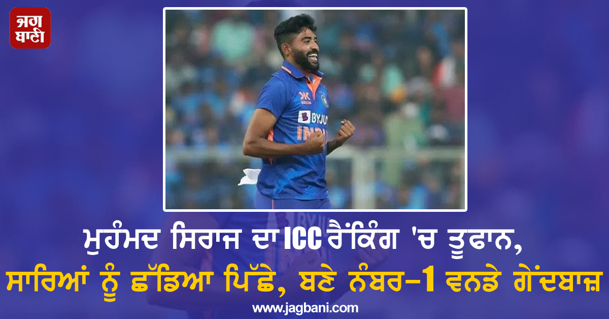 ਮੁਹੰਮਦ ਸਿਰਾਜ ਦਾ ICC ਰੈਂਕਿੰਗ 'ਚ ਤੂਫਾਨ, ਸਾਰਿਆਂ ਨੂੰ ਛੱਡਿਆ ਪਿੱਛੇ, ਬਣੇ ਨੰਬਰ-1 ਵਨਡੇ ਗੇਂਦਬਾਜ਼