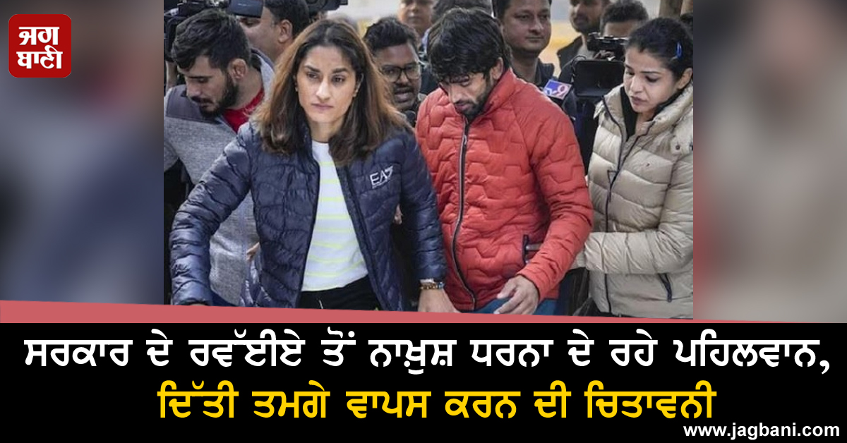 ਸਰਕਾਰ ਦੇ ਰਵੱਈਏ ਤੋਂ ਨਾਖ਼ੁਸ਼ ਧਰਨਾ ਦੇ ਰਹੇ ਪਹਿਲਵਾਨ, ਦਿੱਤੀ ਤਮਗੇ ਵਾਪਸ ਕਰਨ ਦੀ ਚਿਤਾਵਨੀ