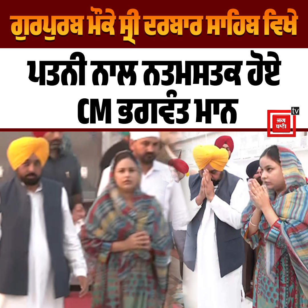 ਗੁਰਪੁਰਬ ਮੌਕੇ ਸ੍ਰੀ ਦਰਬਾਰ ਸਾਹਿਬ ਵਿਖੇ ਪਤਨੀ ਨਾਲ ਨਤਮਸਤਕ ਹੋਏ CM ਭਗਵੰਤ ਮਾਨ