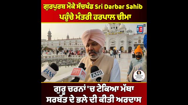 ਗੁਰਪੁਰਬ ਮੌਕੇ ਸੱਚਖੰਡ Sri Darbar Sahib ਪਹੁੰਚੇ ਮੰਤਰੀ ਹਰਪਾਲ ਚੀਮਾ, ਗੁਰੂ ਚਰਨਾਂ ''ਚ ਟੇਕਿਆ ਮੱਥਾ, ਸਰਬੱਤ ਦੇ ਭਲੇ ਦੀ ਕੀਤੀ ਅਰਦਾਸ