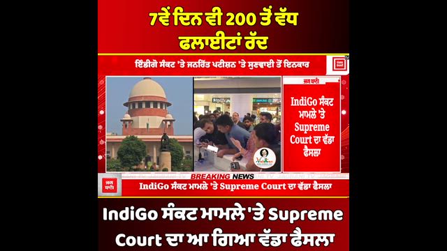 7ਵੇਂ ਦਿਨ ਵੀ 200 ਤੋਂ ਵੱਧ ਫਲਾਈਟਾਂ ਰੱਦ, IndiGo ਸੰਕਟ ਮਾਮਲੇ ''ਤੇ Supreme Court ਦਾ ਆ ਗਿਆ ਵੱਡਾ ਫੈਸਲਾ