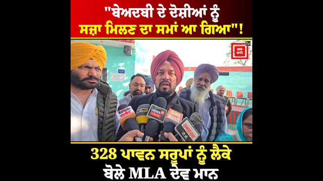 "ਬੇਅਦਬੀ ਦੇ ਦੋਸ਼ੀਆਂ ਨੂੰ ਸਜ਼ਾ ਮਿਲਣ ਦਾ ਸਮਾਂ ਆ ਗਿਆ"! 328 ਪਾਵਨ ਸਰੂਪਾਂ ਨੂੰ ਲੈਕੇ ਬੋਲੇ MLA ਦੇਵ ਮਾਨ