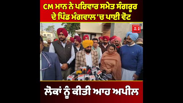 CM ਮਾਨ ਨੇ ਪਰਿਵਾਰ ਸਮੇਤ ਸੰਗਰੂਰ ਦੇ ਪਿੰਡ ਮੰਗਵਾਲ ''ਚ ਪਾਈ ਵੋਟ, ਲੋਕਾਂ ਨੂੰ ਕੀਤੀ ਆਹ ਅਪੀਲ
