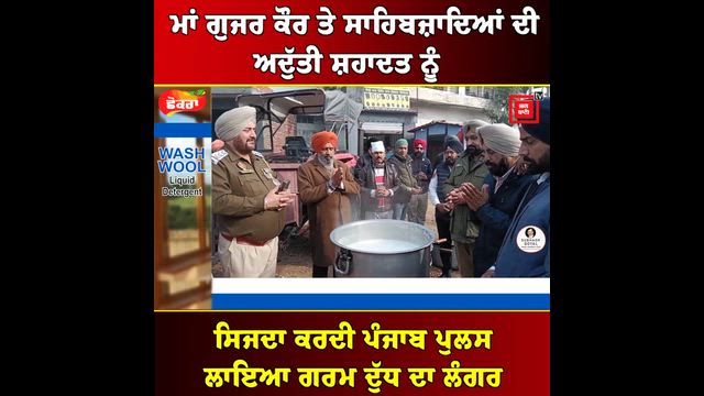 ਮਾਂ ਗੁਜਰ ਕੌਰ ਤੇ ਸਾਹਿਬਜ਼ਾਦਿਆਂ ਦੀ ਅਦੁੱਤੀ ਸ਼ਹਾਦਤ ਨੂੰ ਸਿਜਦਾ ਕਰਦੀ ਪੰਜਾਬ ਪੁਲਸ, ਲਾਇਆ ਗਰਮ ਦੁੱਧ ਦਾ ਲੰਗਰ
