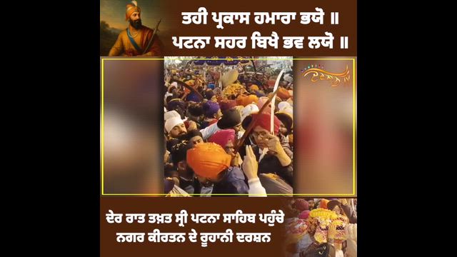 ਪਟਨਾ ਸਹਰ ਬਿਖੈ ਭਵ ਲਯੋ ॥ ਦੇਰ ਰਾਤ ਤਖ਼ਤ ਸ੍ਰੀ ਪਟਨਾ ਸਾਹਿਬ ਪਹੁੰਚੇ ਨਗਰ ਕੀਰਤਨ ਦੇ ਰੂਹਾਨੀ ਦਰਸ਼ਨ, ਸੰਗਤਾਂ ਦਾ ਆਇਆ ਹੜ੍ਹ