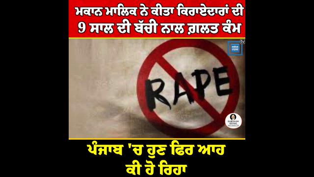ਪੰਜਾਬ ''ਚ ਸ਼ਰਮਸਾਰ ਕਰਨ ਵਾਲੀ ਘਟਨਾ, ਮਕਾਨ ਮਾਲਿਕ ਨੇ ਕੀਤਾ ਕਿਰਾਏਦਾਰਾਂ ਦੀ 9 ਸਾਲ ਦੀ ਬੱਚੀ ਨਾਲ ਗ਼ਲਤ ਕੰਮ